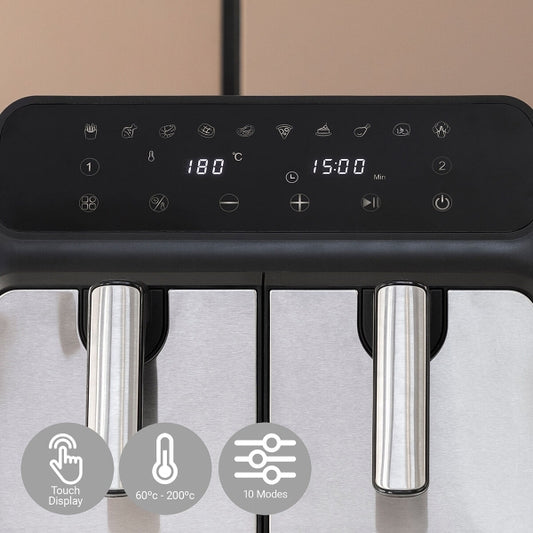AIRFRYER kahdella korilla INNOVAGOODS FRYINN DOUBLE 8000 MUSTA 3400 W 8 L RUOSTUMATON TERÄS